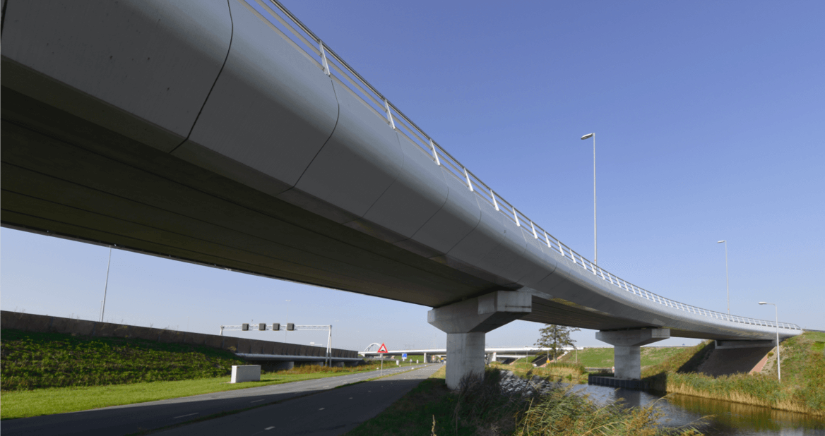 Circa 6 km composiet randelementen met in 5 verschillende contouren afhankelijk van de betonligger hoogte.